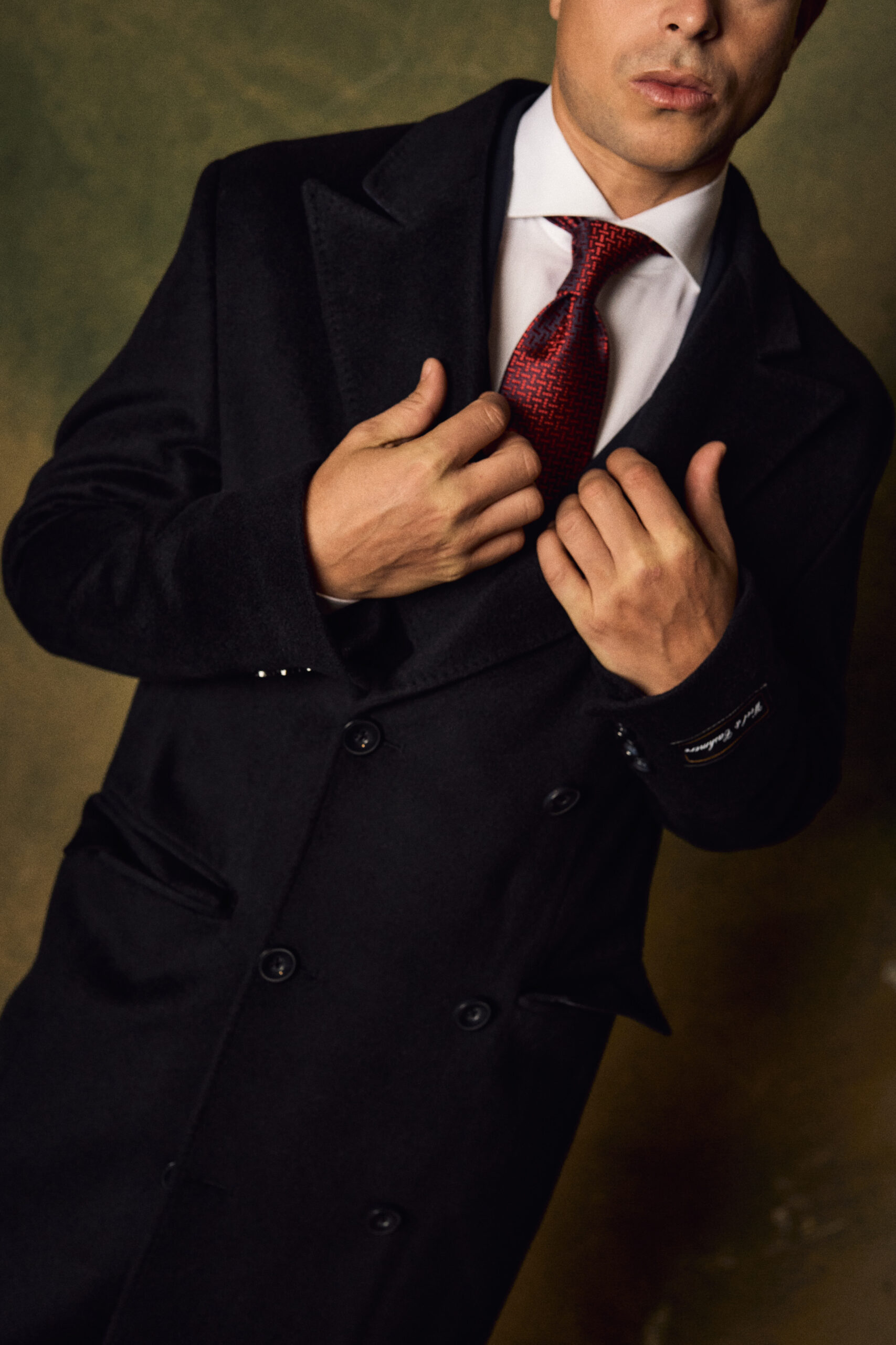 The coat features a structured tailored fit, wide lapels, and a long, clean cut that adds a sense of sophistication and authority. Perfectly suited for winter occasions, business wear, or formal evenings, this cashmere overcoat is the ultimate expression of classic menswear luxury.