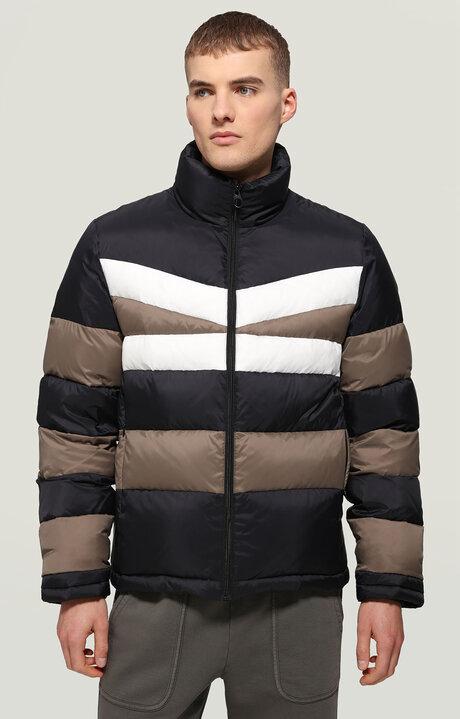 The world of rugby, one of this season’s inspirations, takes on an urban edge with this men’s puffer jacket which echoes the striped motif, typical of the garments used in this sport. The the quilting also forms a K, in a nod to Bikkembergs lettering. Made of matte nylon fabric, this padded jacket is equipped with a snug collar and side pockets.