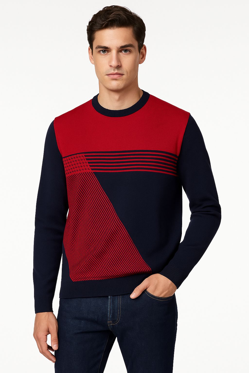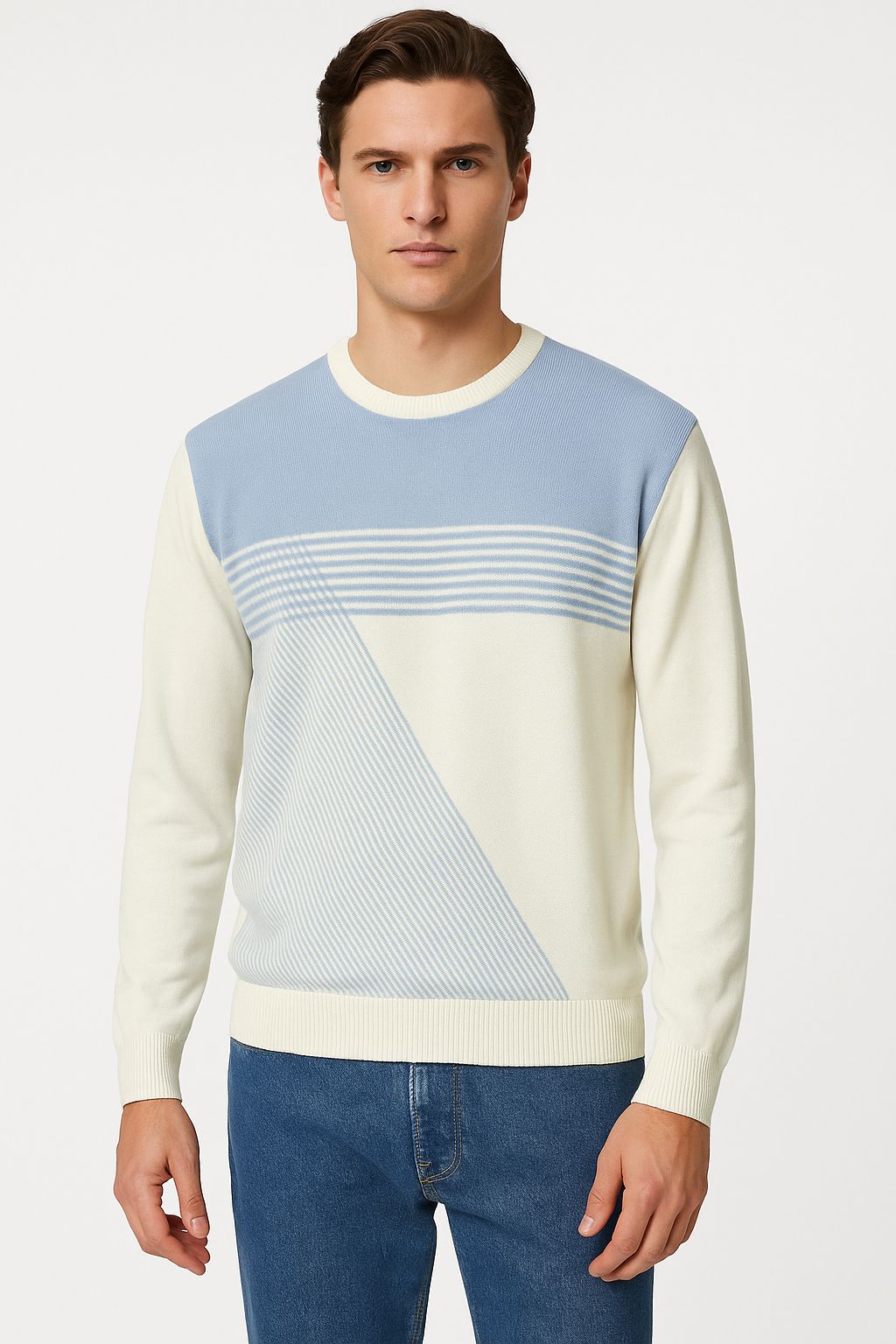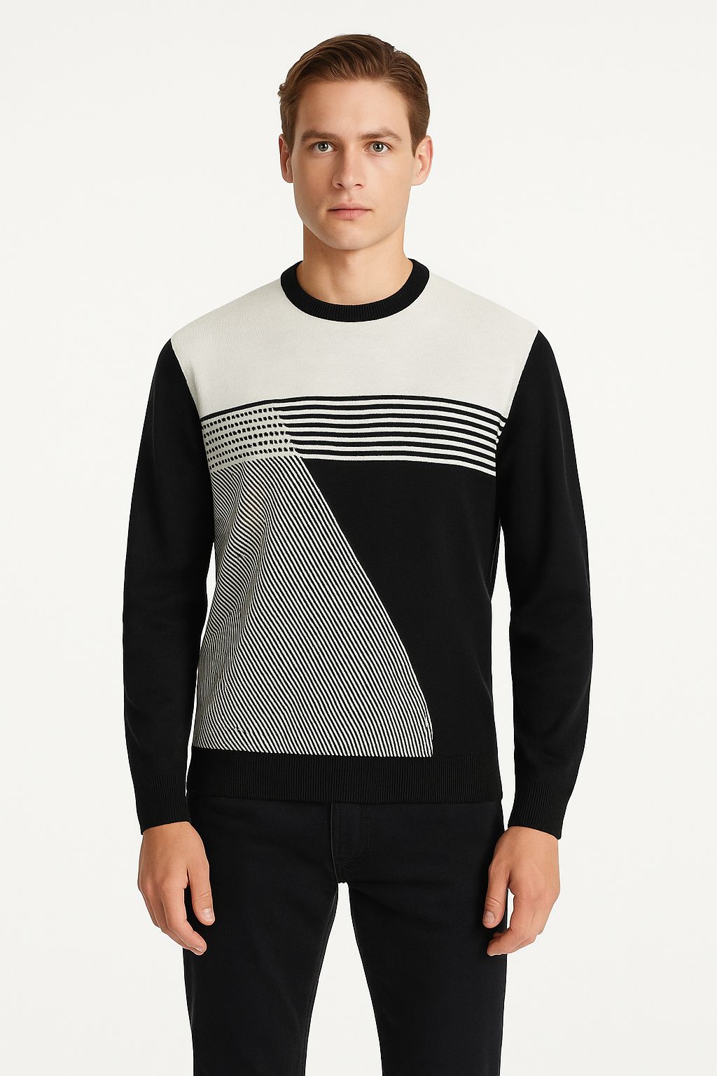 Crewneck sweater made with jacquard technique. This pullover is trimmed with ribbed knit and a sweatshirt-inspired front insert.