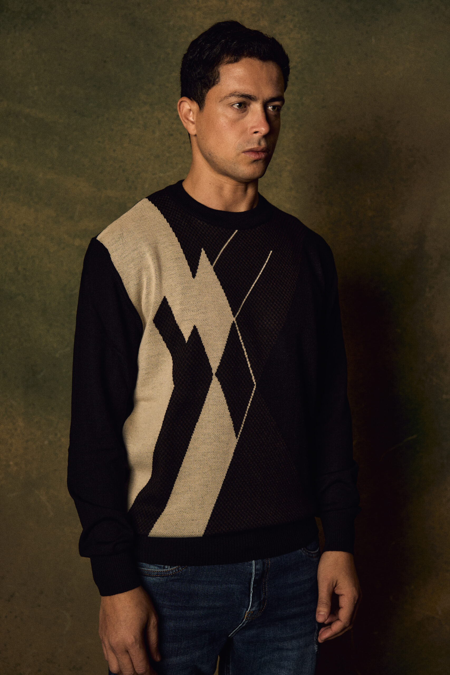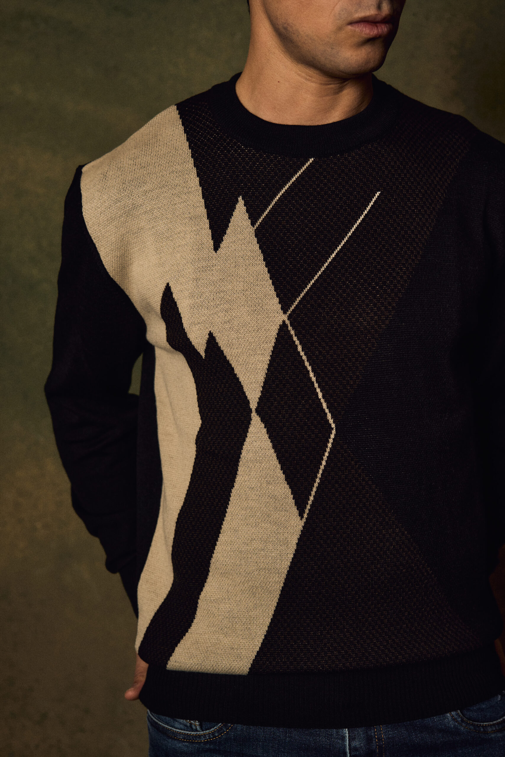 Crewneck sweater made with jacquard technique. This pullover is trimmed with ribbed knit and a sweatshirt-inspired front insert.