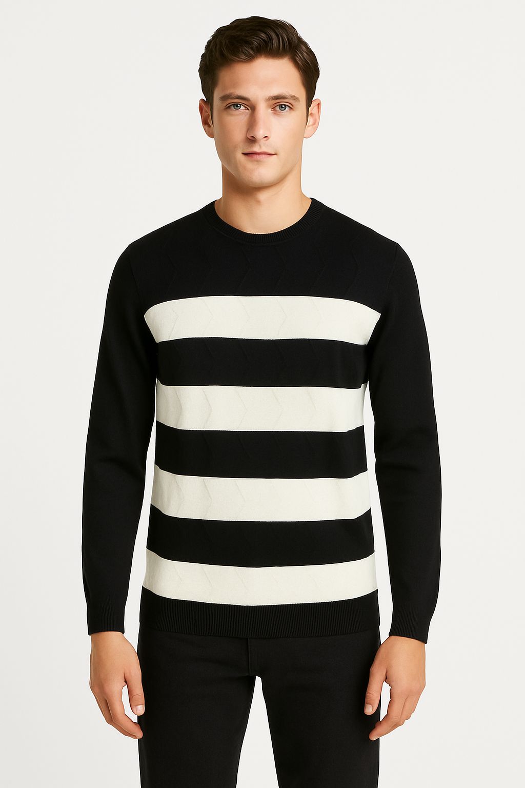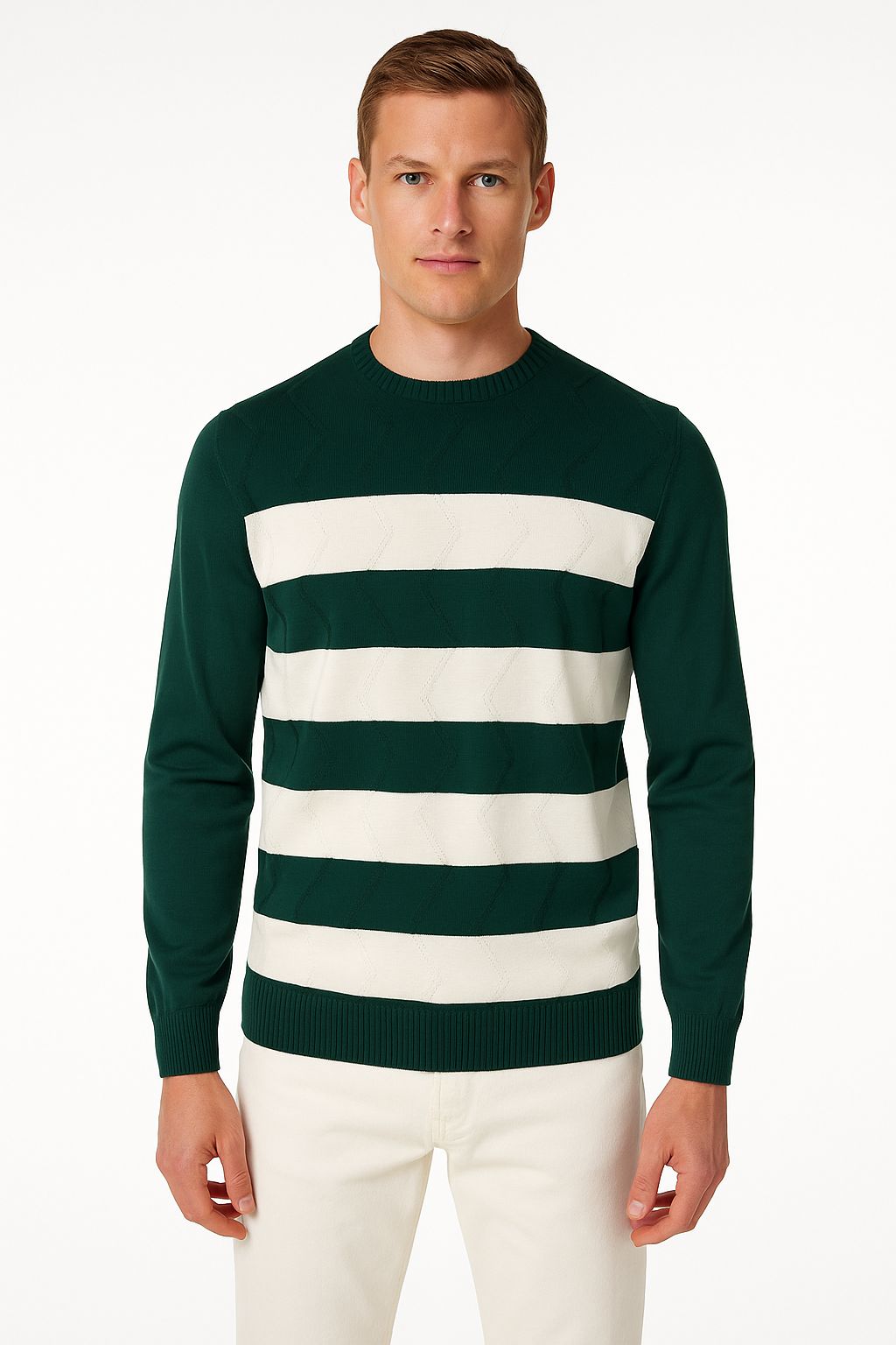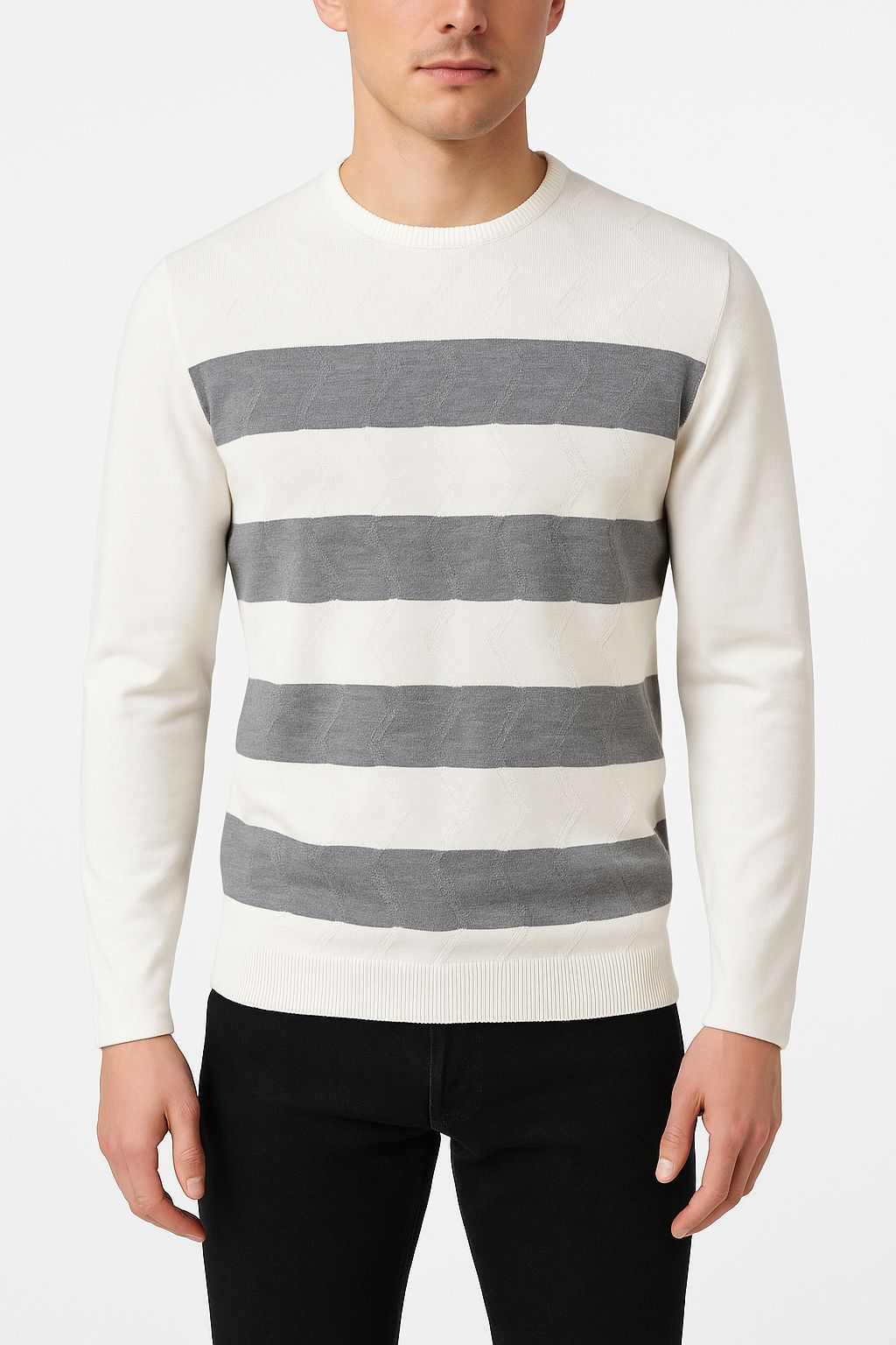 Crewneck sweater made with jacquard technique. This pullover is trimmed with ribbed knit and a sweatshirt-inspired front insert.