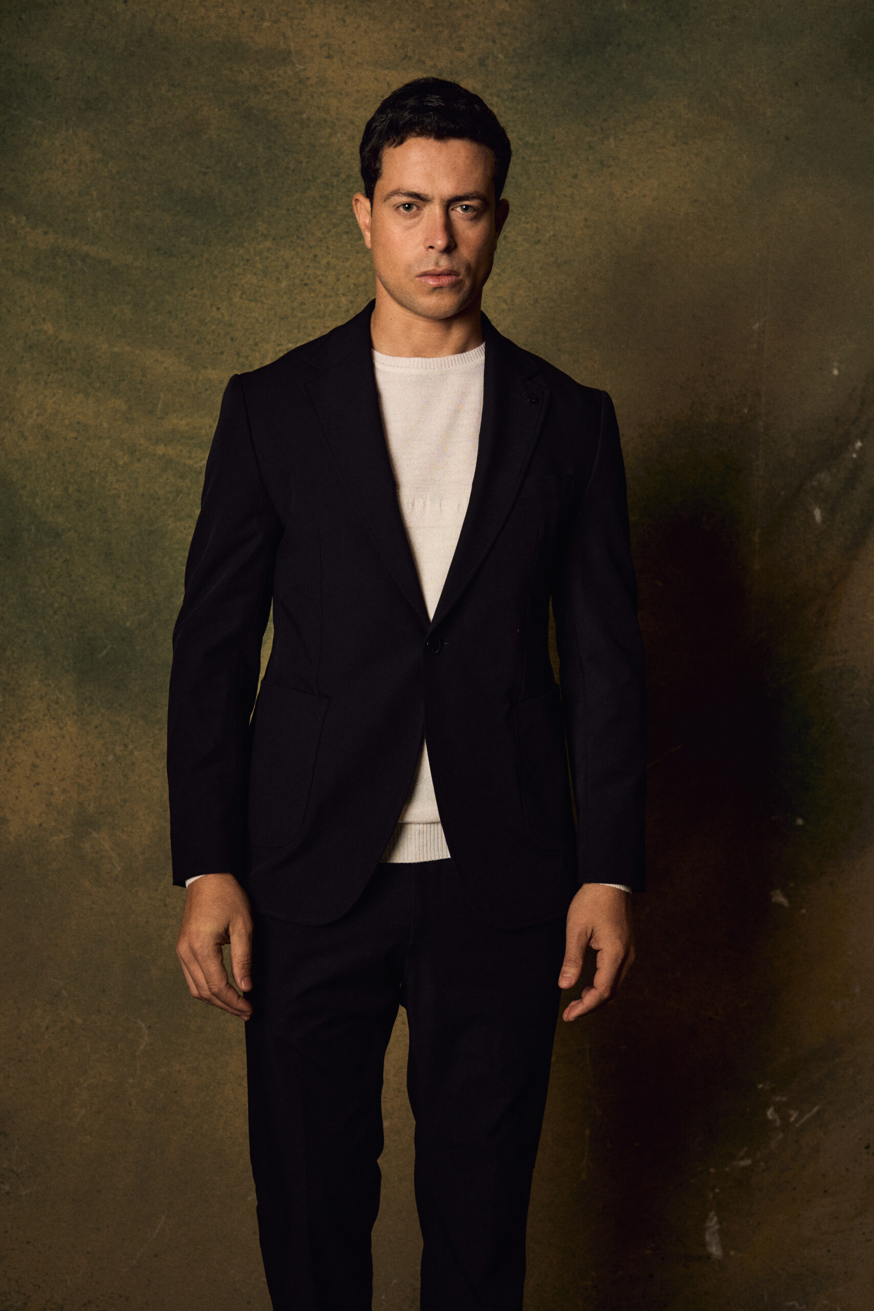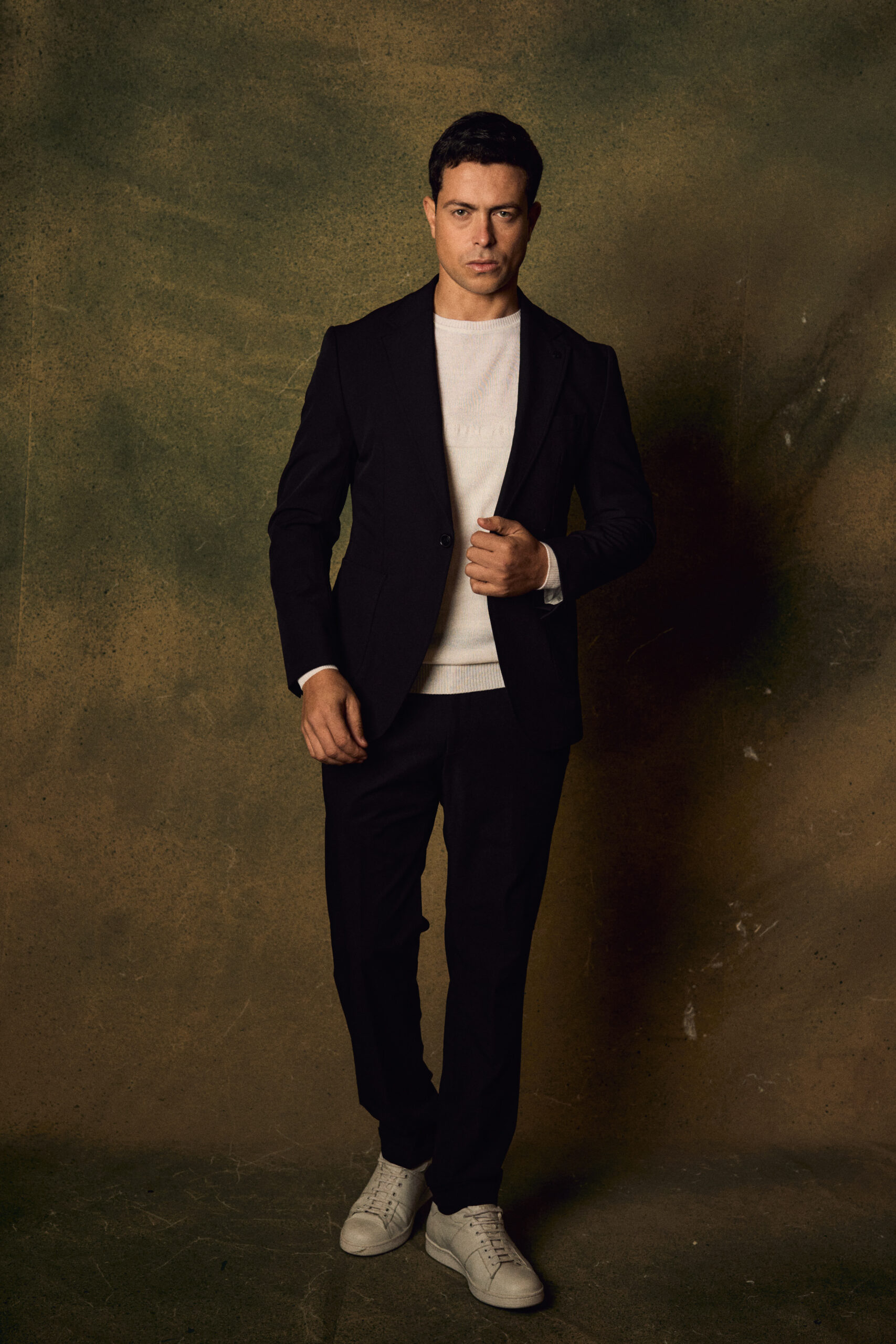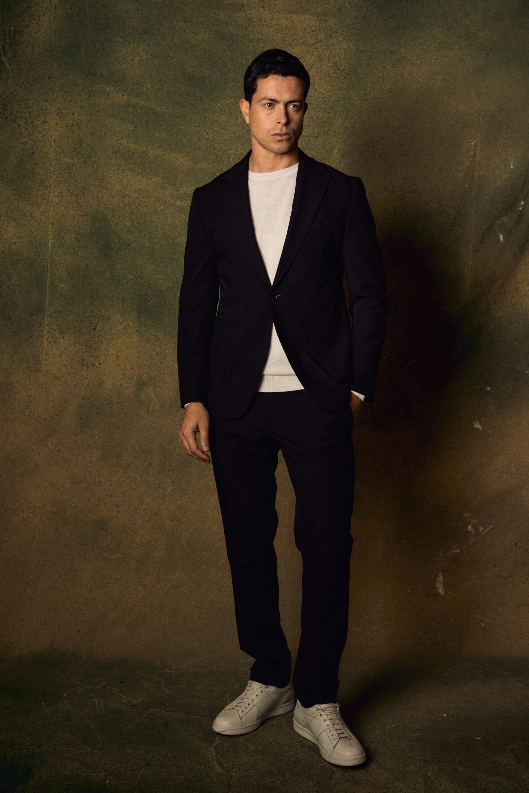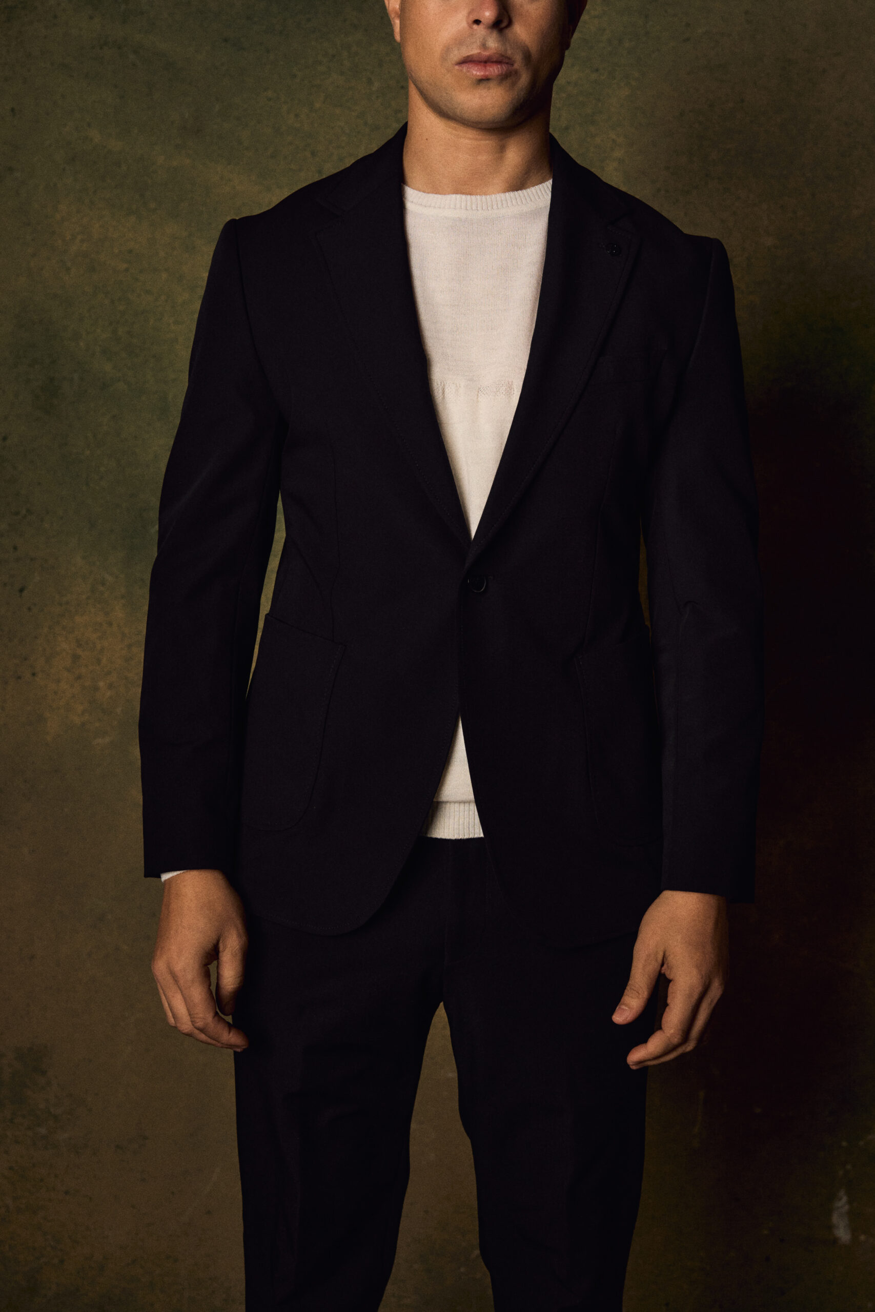 this men’s suit made of creaseless fabric can be folded up to save space in a suitcase and then worn wrinkle-free. The jacket is equipped with classic lapels and pockets. Matching suit are also available in this collection.