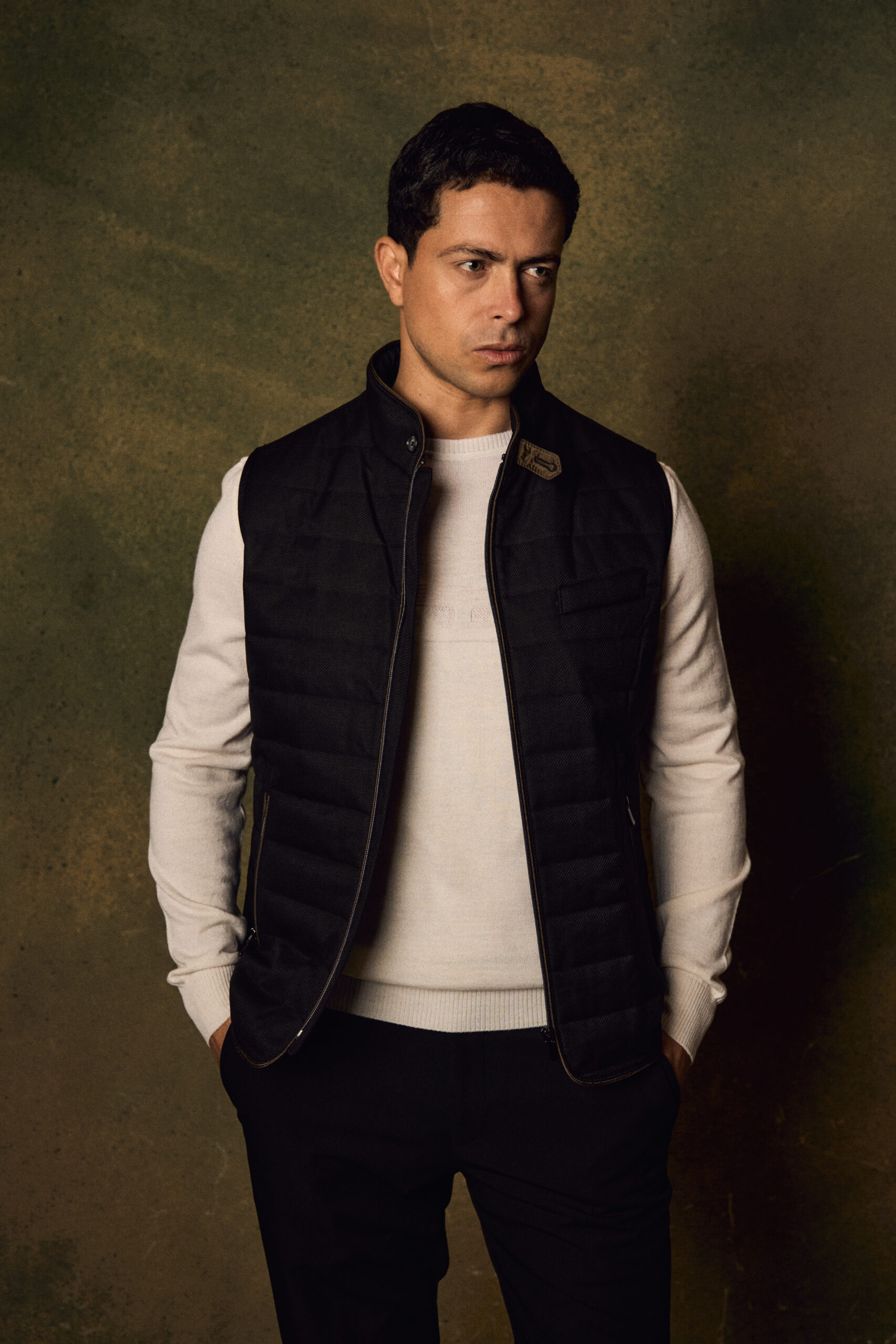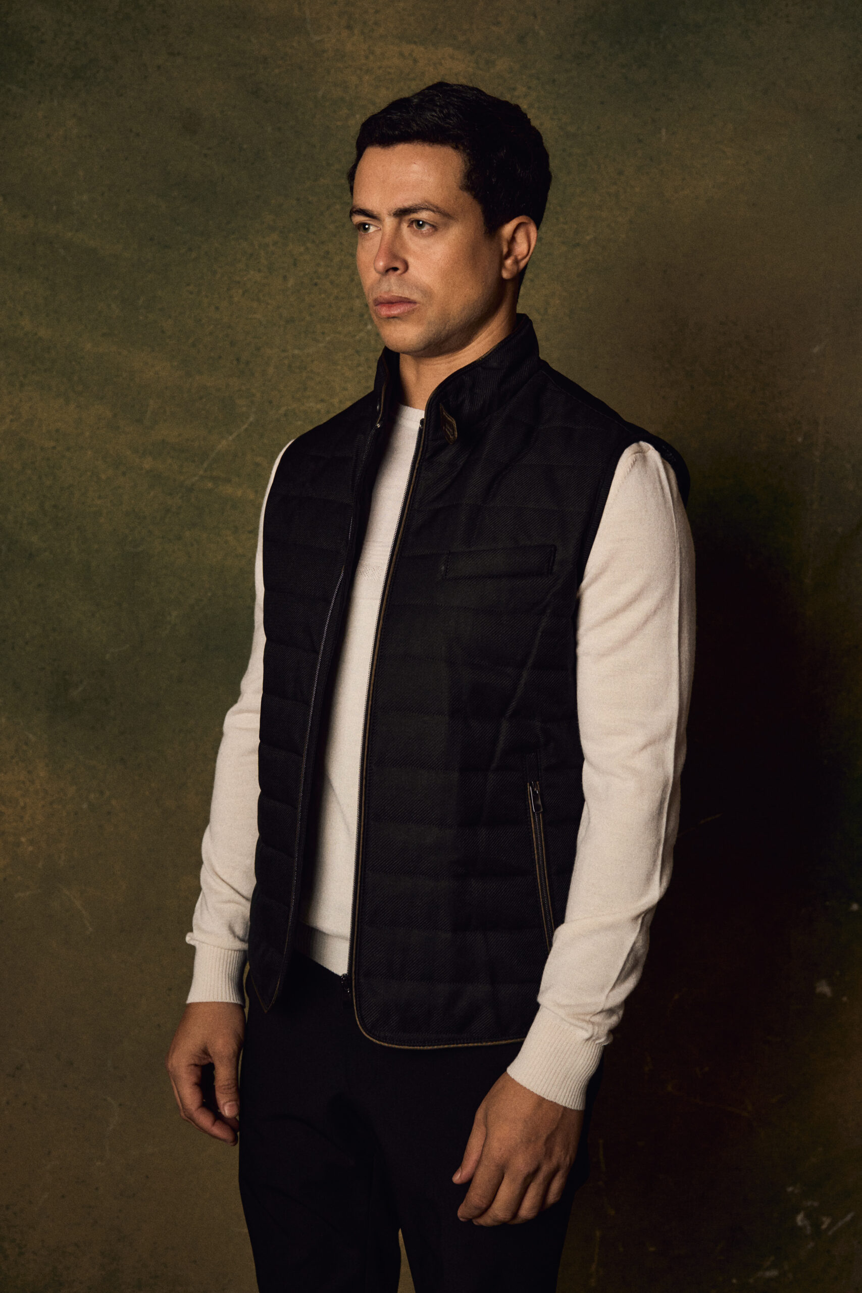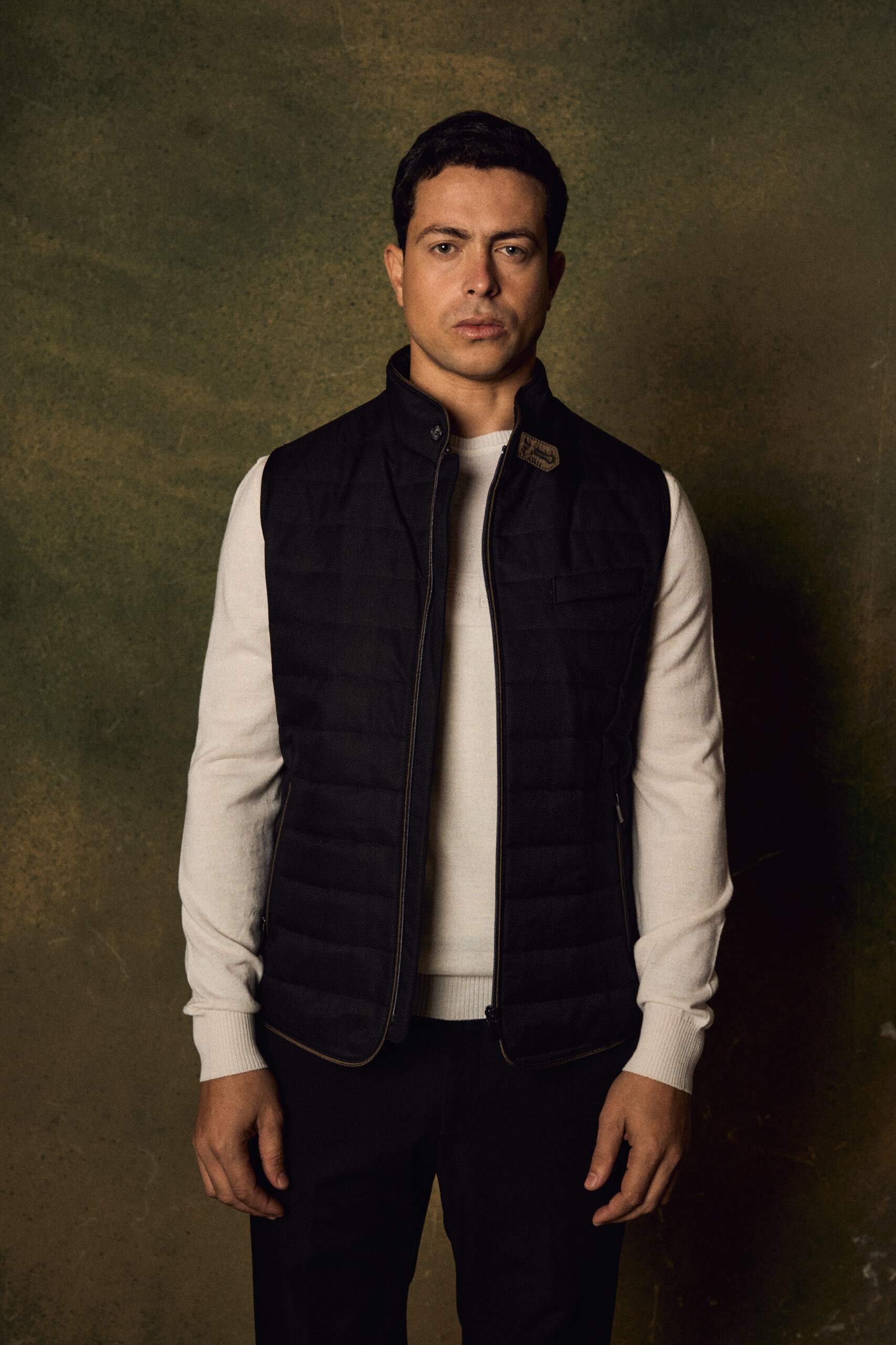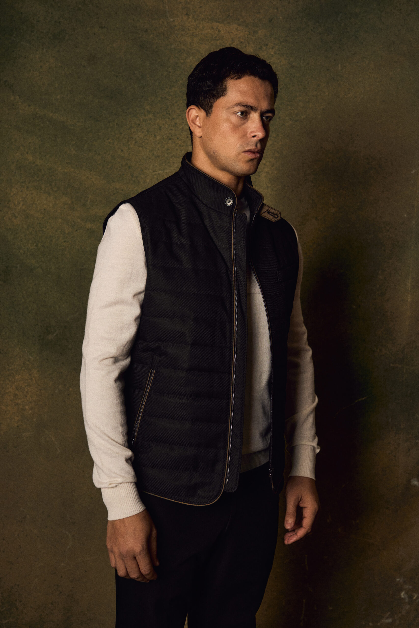 Featuring a full front zipper and a stand collar, the vest delivers a clean, modern look while offering added protection against cool weather. Its versatile design makes it ideal for layering over sweaters or shirts, suitable for casual and smart-casual outfits.